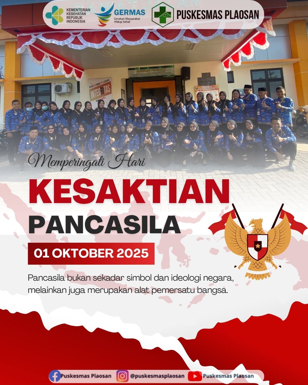 Dalam rangka memperingati Hari Kesaktian Pancasila yang jatuh pada tanggal 1 Oktober 2025, pegawai Puskesmas Plaosan turut berpartisipasi dalam pelaksanaan Upacara Kesaktian Pancasila yang dilaksanakan di Desa Puntukdoro, Kecamatan Plaosan.